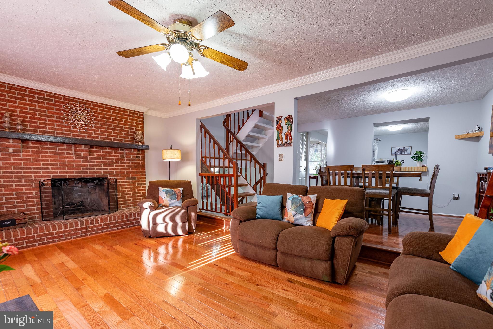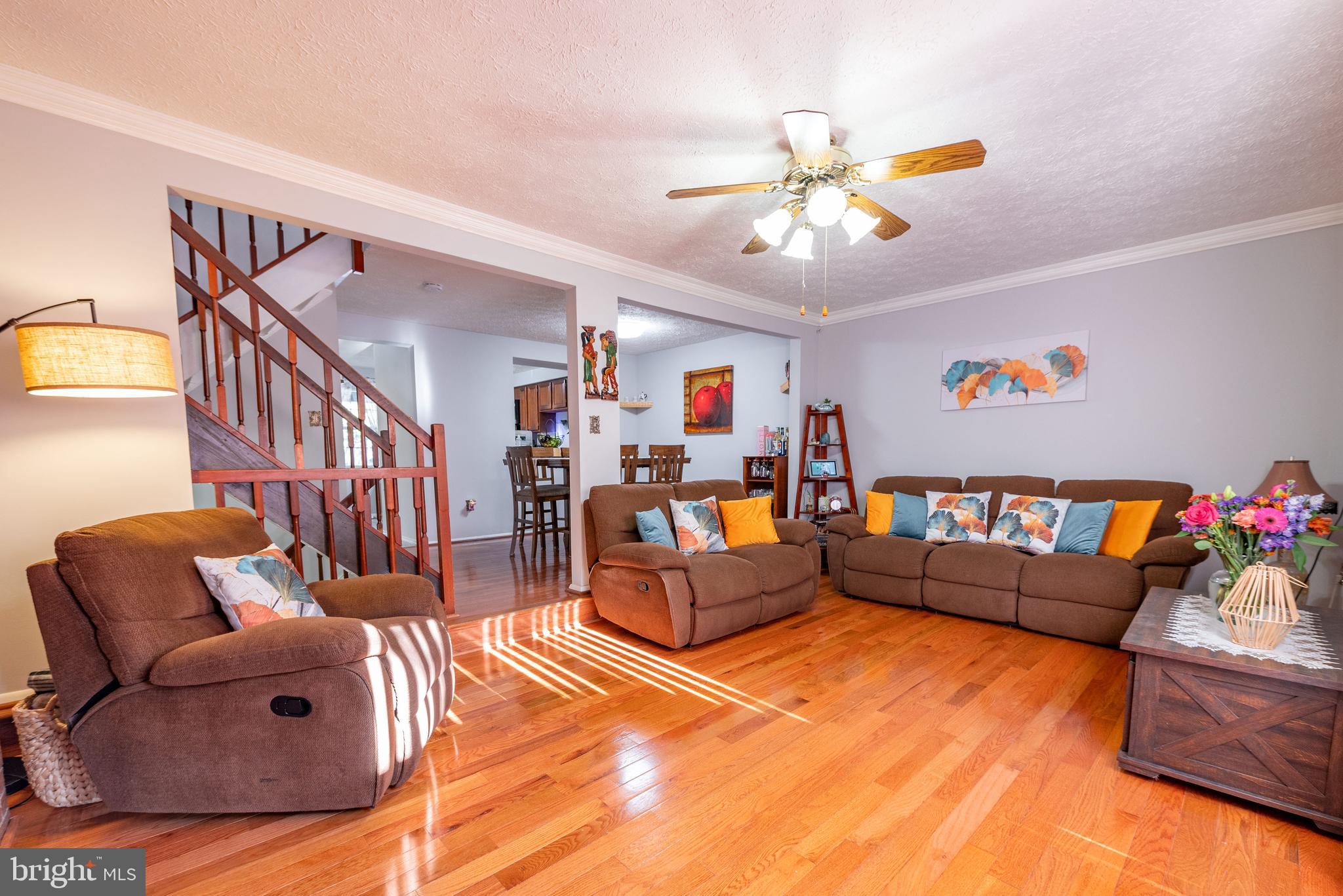 Beautiful end unit Town House with enclosed backyard. The charming front lawn leads up to an outdoor sitting area. This home has a lot to offer, featuring sleek hardwood floors, a beautiful brick accent wall with a cozy fireplace, ideal for the holiday season and cold winter nights. Spacious L shaped kitchen, with lots of cabinet space. Full size and finished basement, with a full bath and access to the back yard. The 3rd floor has 3 spacious bedrooms and 2 full baths. The owner's suit with private bath, has lots of space and abundant natural sunlight flows throughout. The large deck can be easily accessed through the living room area, providing an extension to the living area. Ideal for entertaining and hot summer days. This solid deck, has built-in sitting and a great view and access of the backyard. Freshly painted, recently updated roof, and new landscape. Plenty of additional street parking on Ridgecrest dr. Conveniently located, near shops, parks, restaurants, main roads, public transportation and much more!