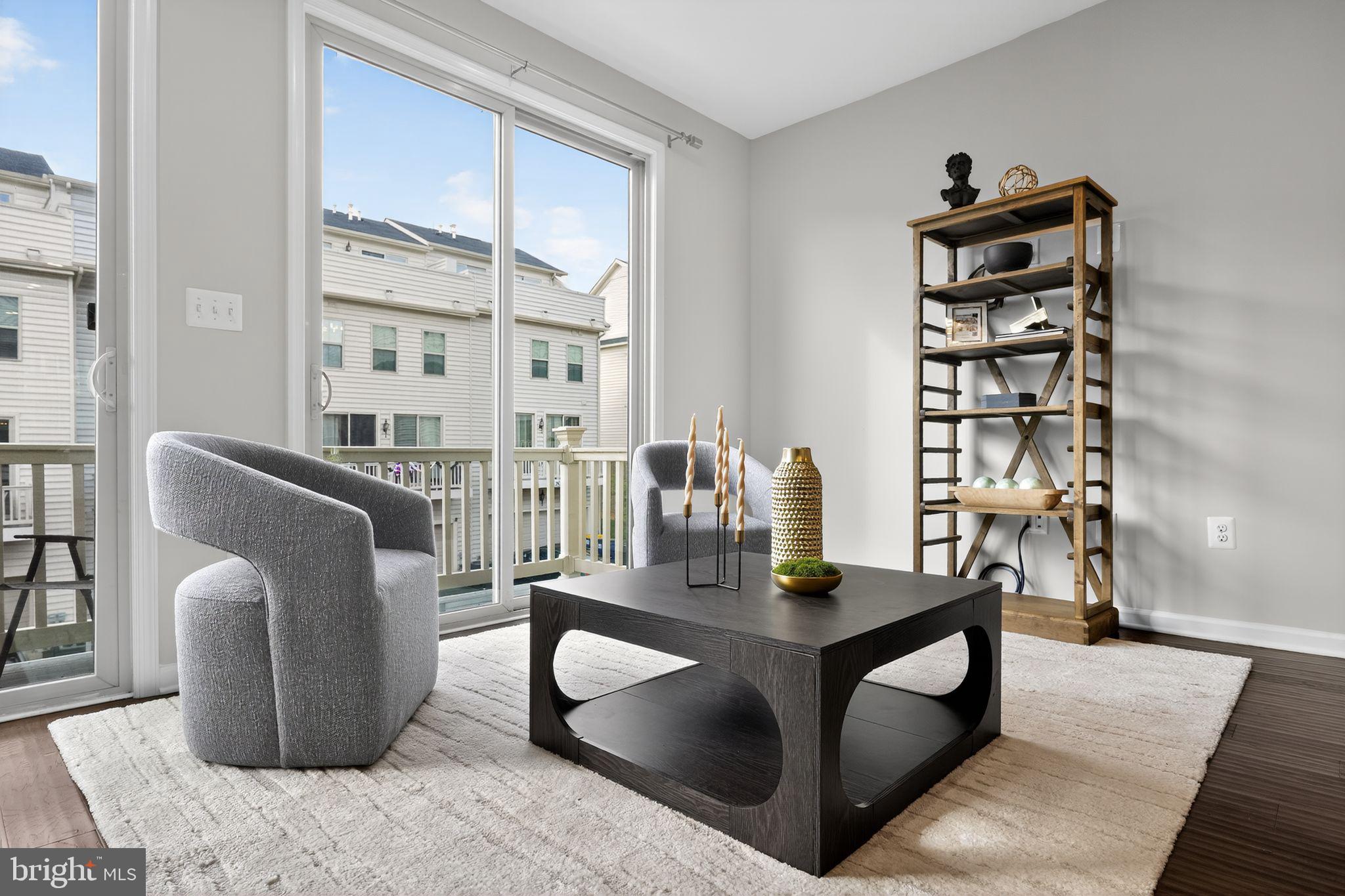 The main level is an entertainer's dream, featuring a contemporary open layout anchored by a chef-inspired kitchen. A grand center island with polished granite, custom lighting, and a walk-in pantry make cooking and hosting effortless. The adjoining dining and sitting areas open through double sliding glass doors to a peaceful rear balcony--perfect for morning coffee or evening relaxation.